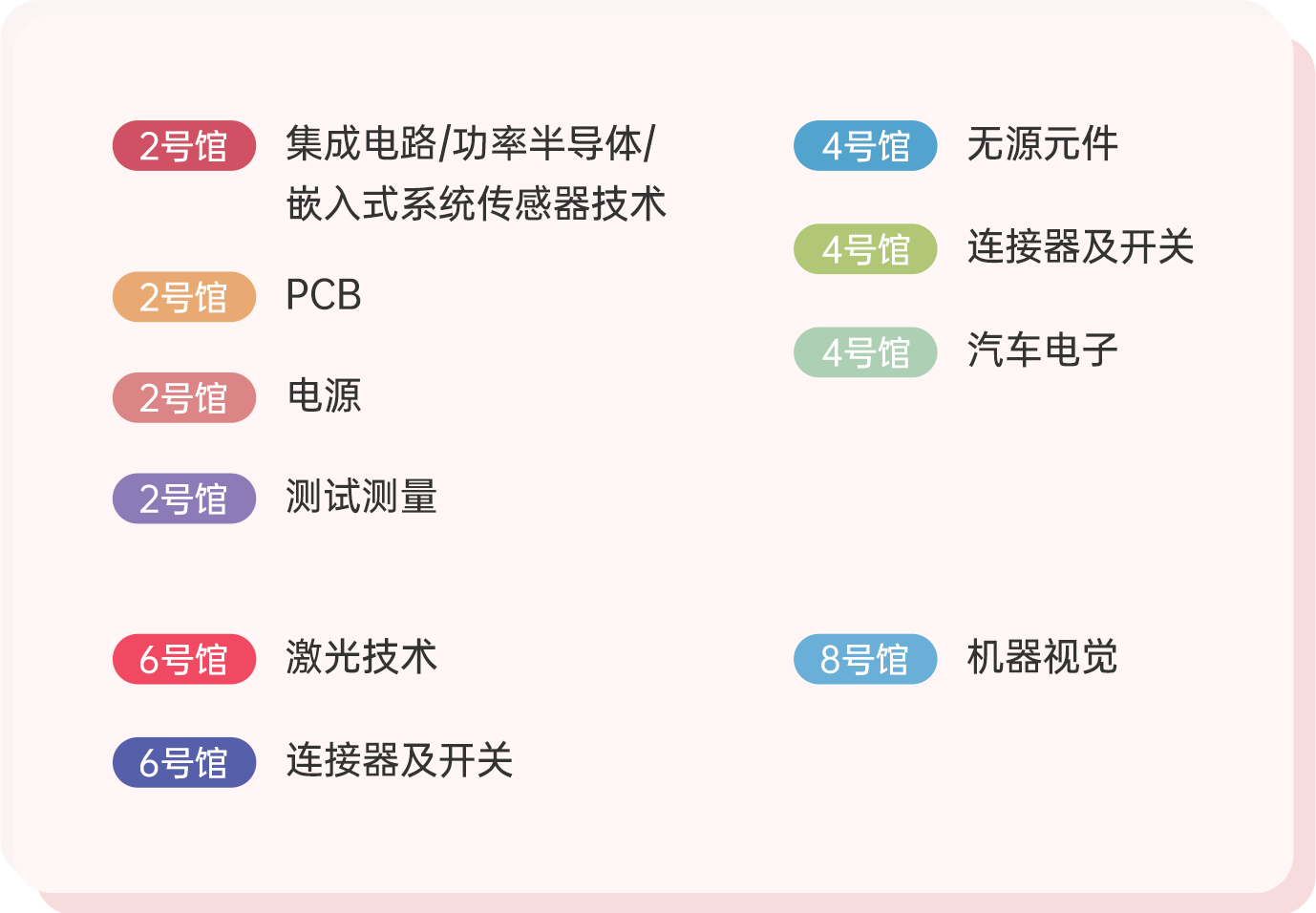 多样化展区筑造行业蓝图: 打造产品主题展 区及各类热门应用技术展区,包括智慧出行 展区、硬核中国芯展区等。 -