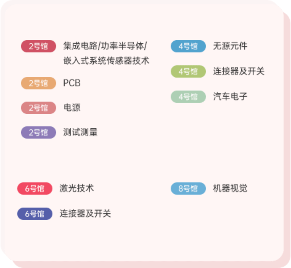 国内外优秀原厂领衔亮相: 智能驾驶,智能制造, 物联网,AR/VR,新能源,5G,人工智能,智能 家居,智慧城市,3C电子,智慧医疗,碳达峰碳 中和,第三代半导体,云计算,工业互联网。 -