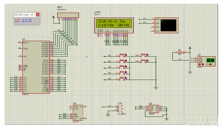 硬件:DS1302、按键、LCD、蜂鸣器