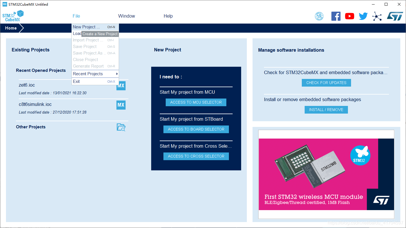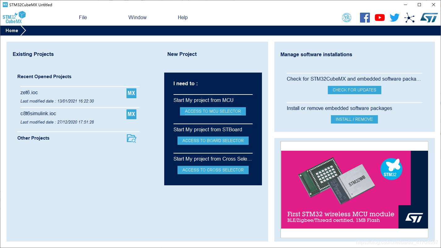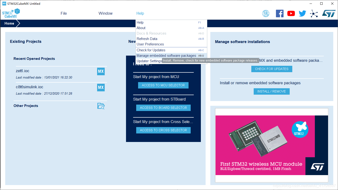 打开Stm32CubeMx,进入安装包管理