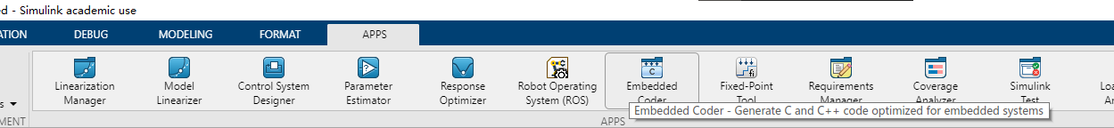在APPS选项卡打开embedded coder