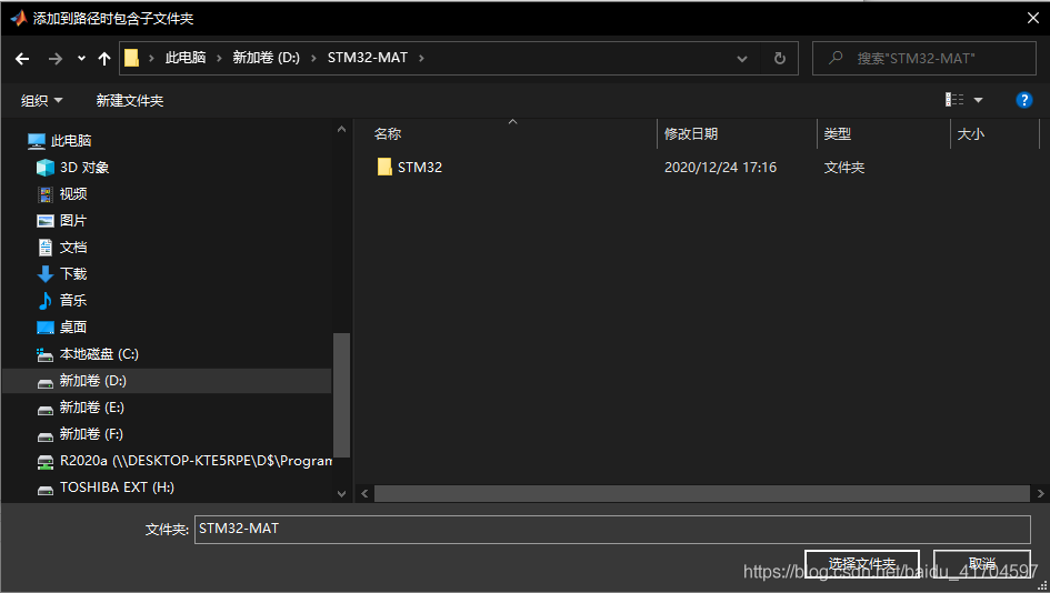 点击添加并包含子文件夹,将stm32-mat安装后的文件夹包含进去