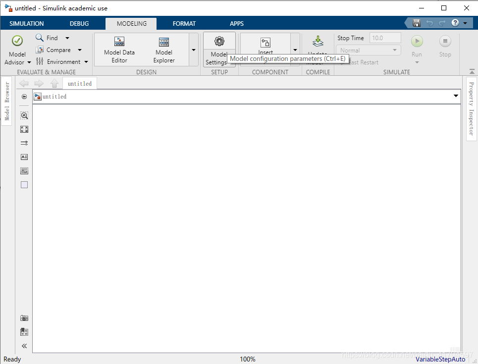 新建一个simulink并打开model settings