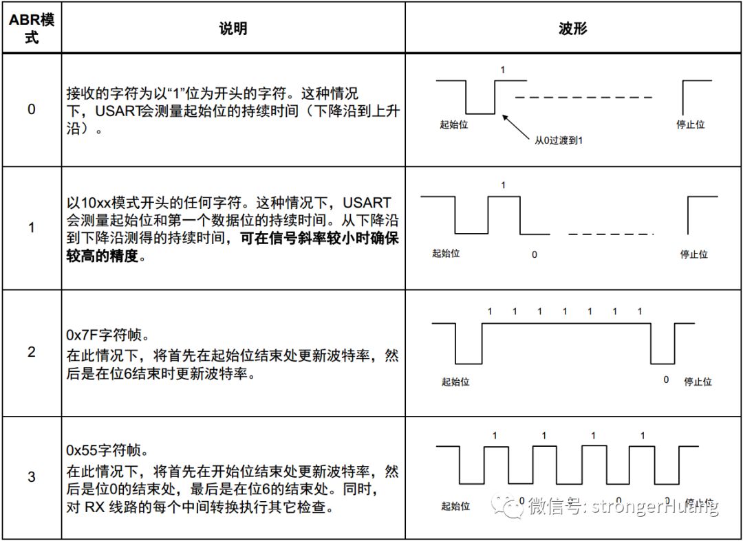 STM32产品上的自动波特率检测功能内置的各种模式基于不同字符模式: