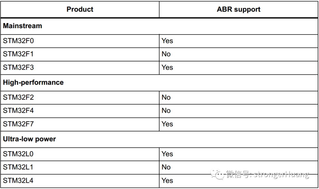 在STM32中,支持硬件自动波特率检测的只有部门系列才支持,之前出来比较早的系列不支持(如F1 F4),这后面推出来的系列都支持这个功能,包含最新才出来的STM32H7、G0系列都支持。