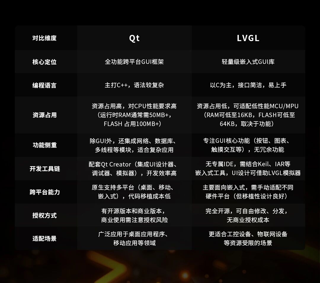 LVGL(Light and Versatile Embedded Graphics Library)是一个免费开源的嵌入式图形库,界面美观, 内存占用低,支持C和Python等开发方式。LVGL具备自由的,开源的GUI库,界面精美,资源消耗小,可移植度高,响应式布局等特点,全库采用c 语言开发。
